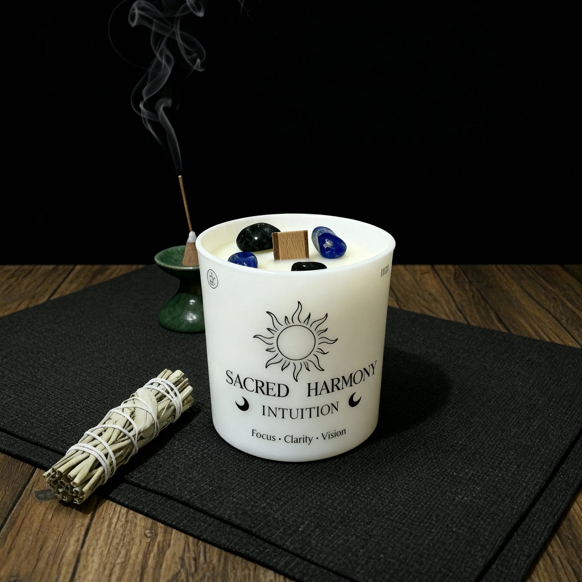 Infused with lapis lazuli to enhance spiritual insight and obsidian for grounding and energetic protection, this candle is designed to open the mind while keeping you centered and secure.